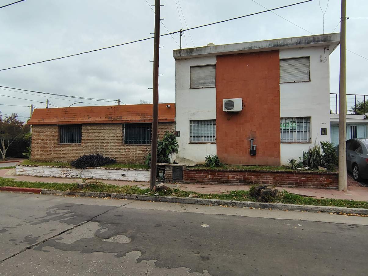 Lote esquina en venta con 1 casa de tres dormitorios en planta alta y baño, en planta baja: living-comedor, cocina- comedor, 2 baños, habitación de servicio, patio y garaje. Segunda casa de 3 dormitorios, cocina, living-comedor, 1 baño, patio interno y