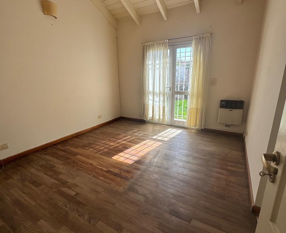 casa , a metros del complejo Dino en Rodríguez del busto-desarrollada en planta baja- frente con rejas y portón corredizo, dos dormitorios: 1) dormitorio principal con piso parquet, vestidor, baño en suite con ante-baño-bañera, aire acondicionado, calefactor, puerta ventana en aluminio,2) segundo dormitorio piso parquet, placard, calefactor, aire acondicionado y aberturas en aluminio, cochera para un vehículo, que se puede ampliar para tres vehículos ya que cuenta con gran jardín, patio donde se puede construir y vincular un tercer dormitorio. el inmueble esta en muy buenas condiciones